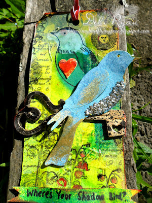 Today, I'm sharing you a tag I've created using the Floriculture Set. I've sprayed and stamped the background, and then used some dies to add the key and the bird. I created the shadow bird by using the cut out from the day as a homemade mask. I'm really enjoying bright colours and getting inky at the moment, I hope you can see that from this tag.